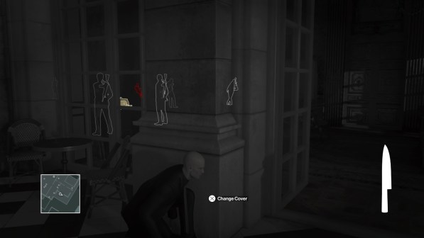 Thankfully, Hitman combats this issue by including the Instinct mode that first appeared in Hitman: Absolution. Pressing RB on the Xbox One and R1 on the PS4 turns the world into black and white but highlights important objects with yellow and targets with red. Instinct mode also helps you differentiate between NPC’s by coloring hostile characters with a shade of orange. Basically, it’s Batman vision with some extra features. The cost requirement from Absolution has been removed, so you can switch between regular vision and Instinct at any given moment.